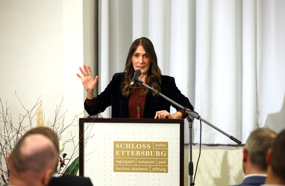 Einen weiteren inhaltlichen Schwerpunkt setzte der Vortrag von Anja Kohl, Journalistin und Moderatorin. Unter dem Titel „Krise oder Wandel. Die Zukunft der deutschen Wirtschaft“ beleuchtete sie die aktuellen wirtschaftlichen Rahmenbedingungen und ordnete gesellschaftliche, politische und ökonomische Entwicklungen ein, die auch die Bauwirtschaft unmittelbar betreffen.