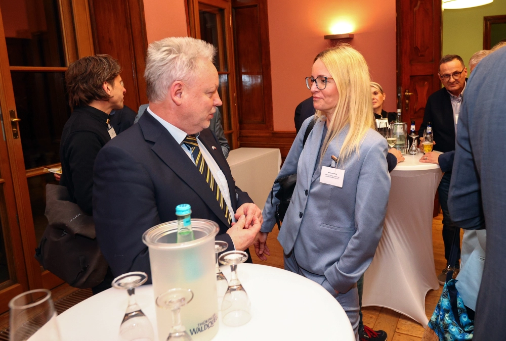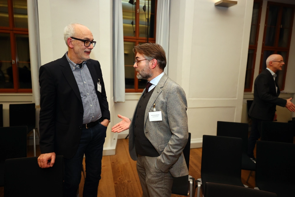 Im Anschluss an das Programm kamen die Teilnehmenden beim Get-together im Neuen Schloss zusammen. In persönlicher Atmosphäre wurden die Impulse der Veranstaltung weiterdiskutiert und Gespräche vertieft.